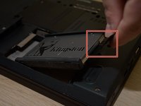 Lift up the storage drive cover from the lip highlighted in orange. Put it aside.