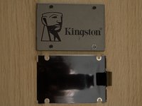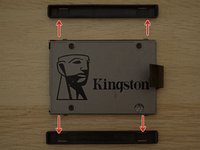 Using a Phillips #00 screwdriver, unscrew the four screws, two on each of the left, and right side of the drive.