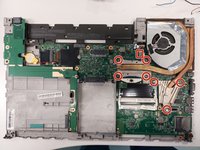 Unscrew the 7 screws holding the CPU heatsink and disconnect the fan.