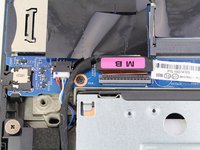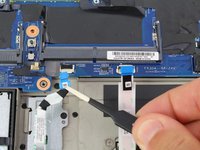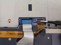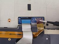 Using a spudger, flip up the locking tab of the ZIF connector in the top right corner of the motherboard.