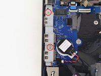 Remove the two 3.3 mm screws from the motherboard with a Phillips #00 screwdriver.