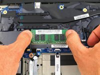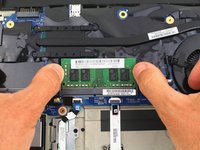 Pull the two tabs on either side of the RAM card outwards with your fingers.