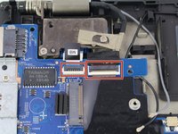 Use a spudger to lift up the two black, hinged locking flaps on the ZIF connectors on the motherboard.
