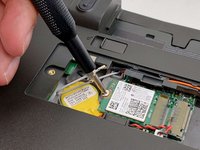 Use a Phillips #00 screwdriver to remove the 3 mm screw that fastens the Wi-Fi card.