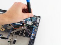 Use a Phillips #1 screwdriver to unscrew the 3.7mm screw holding down the wifi card.