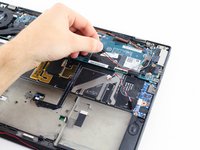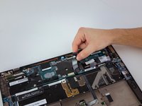 Undo the black clasp that holds the ribbon cable, attached to the fan, in place and disconnect the ribbon cable.