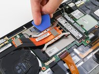 Use nylon tipped tweezers, or your fingers, to gently pull the fan's power cable towards the SSD, disconnecting it from the pins.