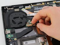 Remove the 3 mm Phillips #0 screw located near the fan.