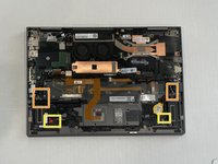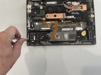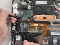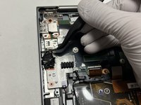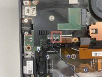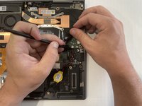 Use a plastic spudger to disconnect the pin on the bottom left of the motherboard.