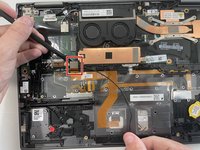 Use a plastic spudger to lift the flaps covering the pins. Disconnect the pins from the motherboard.