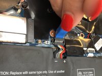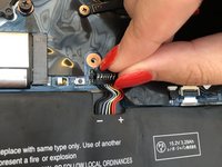 Using a pair of tweezers, push the sides of the white speaker wire toward the battery (where it says Lenovo) to unplug it.