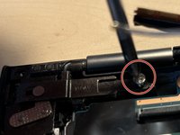 If not already done in a preceding step you will find two silver PH1 screws in the upper left and right corners by the display hinges.