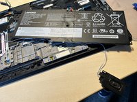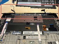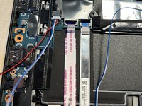 There are ribbon cables above the battery. Unplug them in the same manner as you already did before.