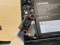 Use a spudger or your fingernails to pull out the speaker plug from the mainboard by the white plastic - not the cable!