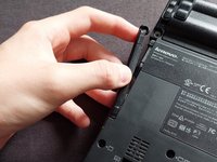 Disconnect the power cord, flip the laptop over and disconnect the battery by unlocking the lock tab and pushing the battery towards the back side of the device.
