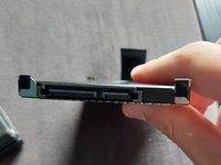 Cool. Now use your fingers to unfold the black plastic pull tab and pull the drive out.