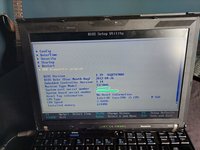 When you see the ThinkPad logo, press the blue ThinkVantage button and go into the BIOS menu by pressing F1.