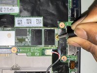 Use a Phillips #1 screwdriver to remove the 3.5 mm screw securing the SSD.