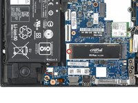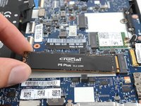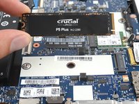 Use a Phillips #1 screwdriver to remove the 2.8 mm-long screw holding the SSD in place.