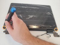 Remove the two 3.3 mm screws that were previously under the covers on the LCD strip using a Phillips #0 screwdriver.