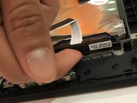 Once the back cover is exposed, remove the two screws holding the hard drive in place.