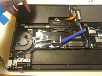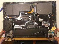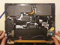Now lift the laptop like when you disconnected the hinges while it's lifted, push the hinges in place.