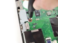Use the JIS #00 screwdriver to remove the single 2.8 mm screw from the motherboard.