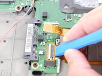 Using the plastic opening tool, flip up the locking tab on the zero insertion force (ZIF) connector and disconnect the cable from the motherboard.