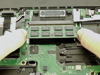 Lift up the black piece of tape and remove it to uncover the RAM sticks underneath.