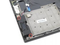 Using the JIS #00 screwdriver, remove the two 4.2 mm screws securing the left-side speaker to the device.