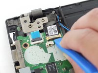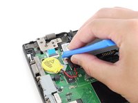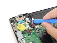 Disconnect the speaker cable from the motherboard using the plastic opening tool.