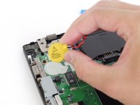 Insert the plastic opening tool underneath the CMOS battery and pry it up and away from the motherboard.