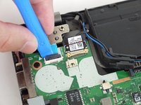 Using the plastic opening tool, disconnect the two cables from the Wi-Fi card.