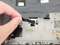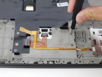 Using the same plastic opening tool, flip up the locking tab and disconnect the trackpad cable from the motherboard.