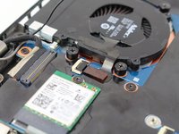 Disconnect the antenna wires on green the wireless LAN card to the left of the fan.