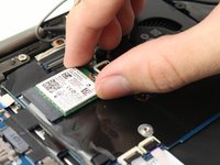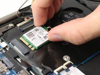 Carefully slide the wireless card out of the slot by pulling it to the right.