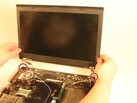 Close the screen, turn laptop back around and re screw screws into designated spots.