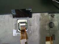 Remove connector to touchpad by easing the black tab on the white connector upwards, and using tweezers pull the connector downwards away from the connection.
