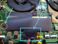 The blue arrow shows where is the adhesive part of the M2.SSD that we have to carefully lift off but keeping attached the other part of the cover.