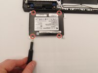 Use the JIS #0 screwdriver to remove all four 3 mm bracket screws from the hard drive.