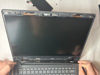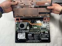 Remove the four 3 mm screws on the hinges on both sides of the back of the laptop.