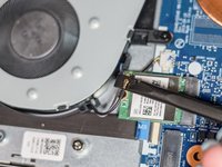 Using the spudger, disconnect the two wireless LAN cables (black and gray) from the wireless LAN card.