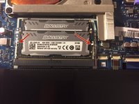 With your fingers or the plastic tool gently move the tabs away from the RAM, the RAM should pop up when both sides or moved.