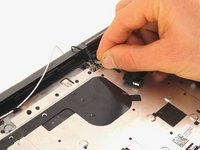 Disconnect the speaker cable by pulling the wire towards the front of the laptop.