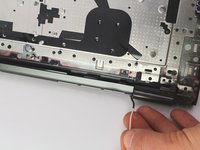 Remove the white antenna wire from underneath the hooks near the back of the laptop.