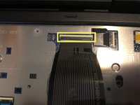 Use a plastic pry tool to lift up the plastic clip holding down the ribbon cable. Be very gentle with it so it doesn't break