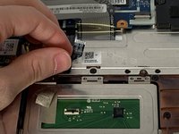There is a small black tab holding the cable for the touchpad in place. Flip this tab up using a nylon spudger to unlock the connector.