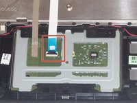 Use a pair of tweezers to disconnect the ZIF connector securing the trackpad ribbon cable. Gently lift up the black tab and the ribbon cable should come free.