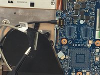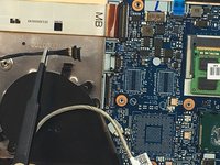 Undo the clips holding the blue and brown ribbon to the motherboard. Use tweezers to gently remove both ribbons.