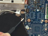 Using tweezers, disconnect the second cable connecting the screen to the motherboard.